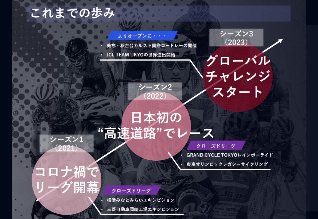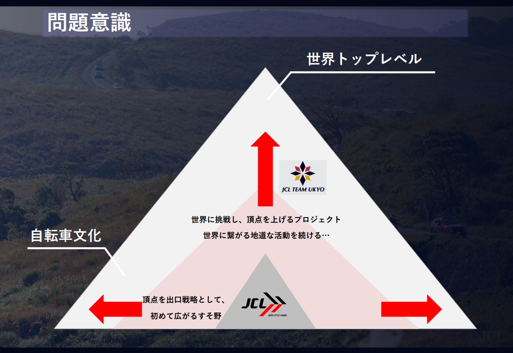 世界への繋がりを作るためにJCL TEAM UKYOが発足しておりますが、国内で開催されるレースにおいても「このレースに勝利したライダーは、世界的な評価を得ることができる」というクオリティが担保されたレース開催が必要と考えています。それは必然的に、UCI基準のレースであり、さらなる大きな資金調達が必要となるプロジェクトとなります。なおこの観点から、2023年より国内クローズドリーグからの方針転換を行っています。
