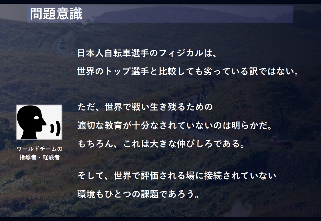 「有力選手の世界への派遣」については、国内で活躍する日本人選手を中心にJCL TEAM UKYOを発足させ、サウジツアー・ツアーオブオマーンなどを皮切りに、世界への挑戦をスタートすることが出来ました。
