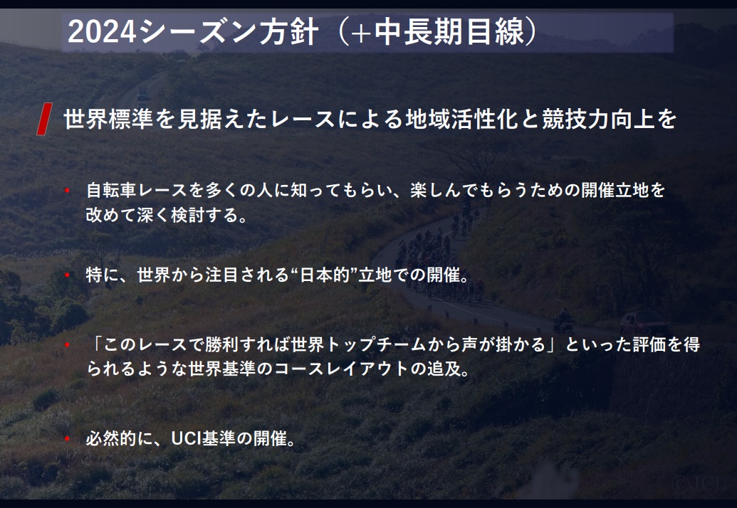 株式会社ジャパンサイクルリーグ(以下「JCL」という。)は、国内競技力の向上及び地域の更なる活性化のために、2023年に発表した方針を更に深化させていきます。