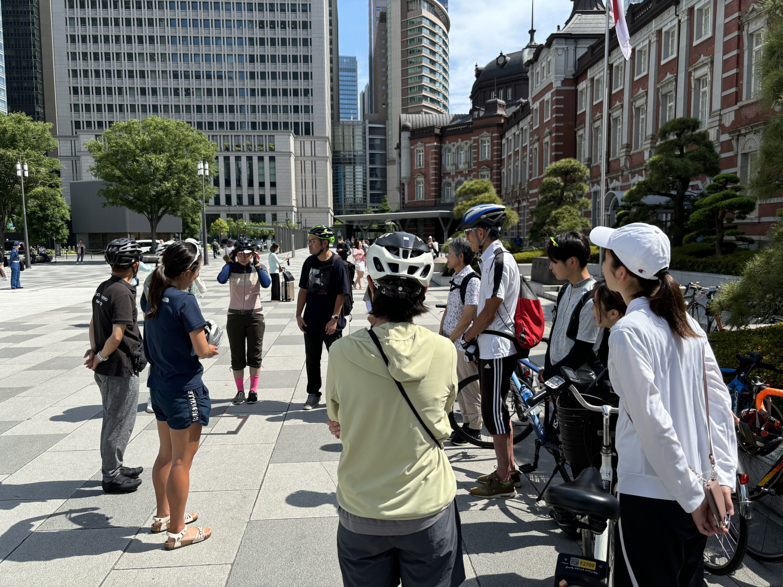 参加者のみなさん、それぞれの自転車を持参し東京駅丸の内広場に集合!