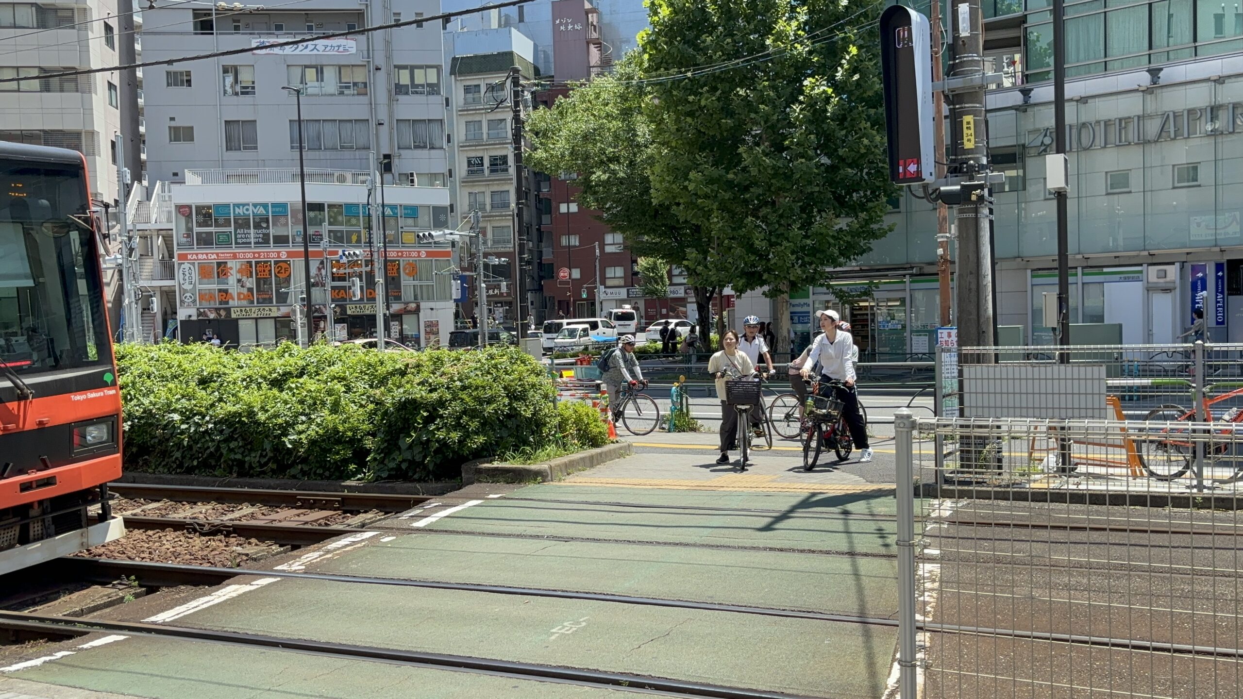 大塚駅では、都電荒川線がちょうど通りすぎていく瞬間に出会えたり、それぞれの駅によって雰囲気の異なる街の様子を楽しみながらサイクリングしました。