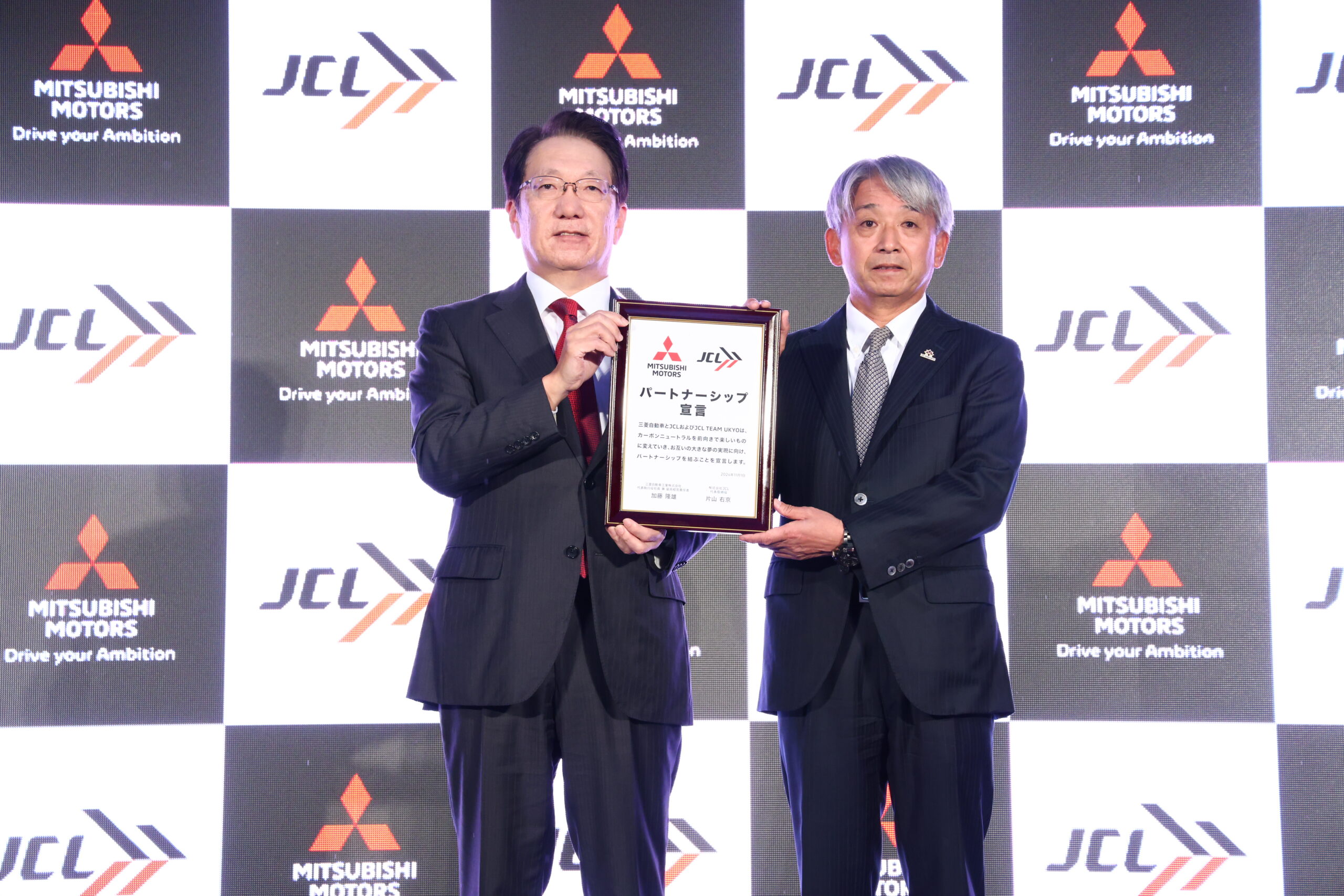 株式会社JCL(本社:東京都千代田区、代表取締役:片山 右京、以下、「JCL」)は、三菱自動車工業株式会社(本社:東京都港区、代表執行役社長兼最高経営責任者:加藤 隆雄、以下三菱自動車)と、トップパートナーシップ契約を締結いたしました。